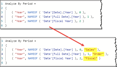 - Fields with similar names: the flexibility to edit the DAX behind a field parameter makes it easier to address this situation. First, edit the DAX to add a new column to identify the field based on source, applicability, or any other keyword. Second, rename this new column to a meaningful name. Third, use the column as a visual level filter to filter out the irrelevant fields.