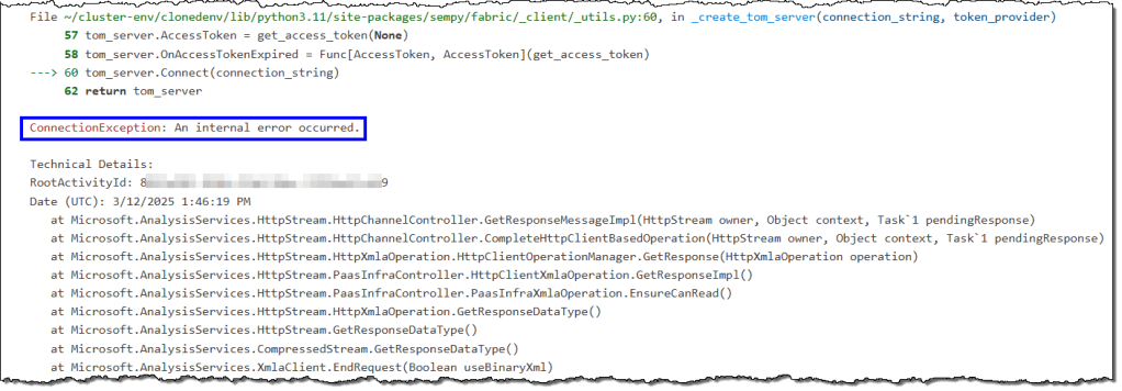 Furthermore, the capacity’s XMLA endpoint must be enabled. SemPy produces the same error if any of these conditions are unmet.