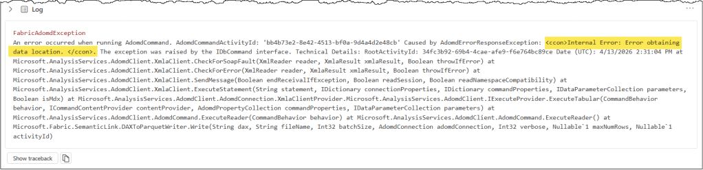 If you’ve not opened your Capacity Metrics report for a while, then your CU extraction DAX query might fail with an “Error obtaining data location” error.